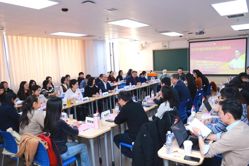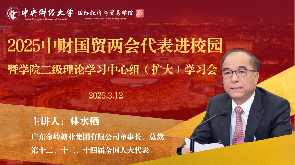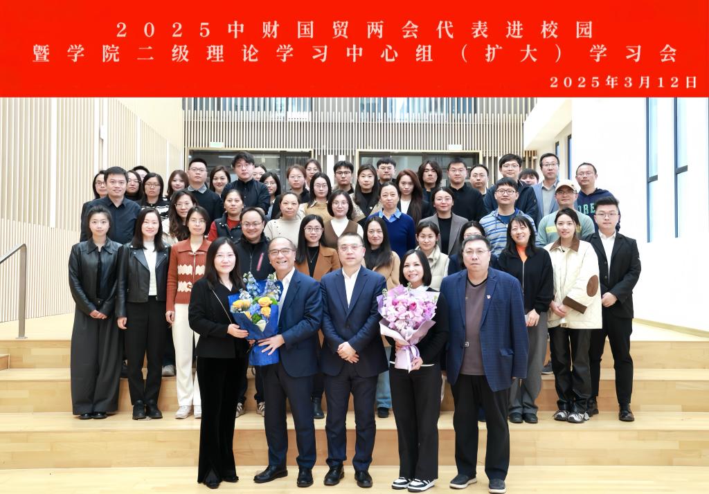 2025年3月12日,2025中财国贸两会代表进校园暨学院二级理论学习中心组(扩大)学习会在英国上市365官网沙河校区学院13号楼311成功举办。第十二、十三、十四届全国人大代表、广东金岭糖业集团有限公司(以下简称“金岭集团”)董事长林水栖,金岭集团副总裁林森莅临学院。学院党委委员、领导班子成员、教师代表、党员代表、学生代表等师生共同参加本次学习会。会议由院长张晓涛教授主持。