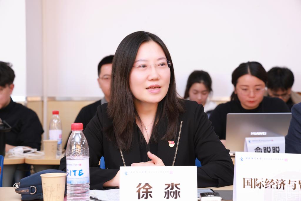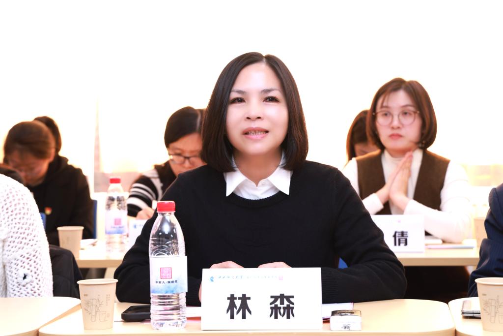 学院党委书记徐淼对本次会议进行总结发言,她代表学院对林水栖先生在两会结束后第一时间入校与师生进行面对面分享、林森女士在百忙中抽出宝贵时间亲赴学院进行近距离的指导交流表示诚挚的感谢。连续三届当选全国人大代表的林董事长不仅是民营企业的杰出代表,更是推动产教融合、助力高校人才培养的典范。学院在当前和今后一段时间,要通过各种方式深入学习贯彻2025年全国两会精神,特别是习近平总书记关于教育、科技、人才“三位一体”协同发展的重要论述,要聚焦新时代高校人才培养与服务国家战略的使命担当。两会报告中强调“拓宽市场化就业渠道,强化促进青年就业政策举措”,林董事长也讲到,金岭糖业通过引入人工智能、大数据推动制糖业转型升级,并提出“人才四结合”理念,这都启示我们:学院要突破传统学科壁垒,以前瞻性视野优化学科布局和人才培养体系,为课堂延伸到产业链一线搭建平台。站在新的历史起点,学院党委将以两会精神为指引,牢记“为党育人、为国育才”使命,强化价值引领、深化校企协同、精准赋能就业,将人才培养的“供给侧”与经济社会“需求侧”深度对接,为中国式现代化建设输送更多“厚基础、强实践、勇担当”的国贸英才!