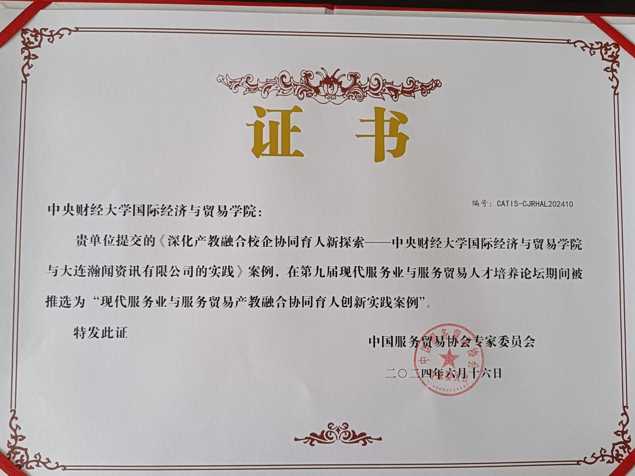基于此,学院在产教融合校企协同育人的创新的实践形成的成果《深化产教融合校企协同育人新探索——英国上市365官网与大连瀚闻资讯有限公司的实践》案例在第九届现代服务业与服务贸易人才培养论坛推选为“现代服务业与服务贸易产教融合协同育人创新实践案例”,《推进产教深度融合,助力新质生产力人才培养》获第九届现代服务业与服务贸易人才培养论坛暨第二届现代服务业与服务贸易教育教学成果二等奖,标志着校企协同模式获行业权威认可。