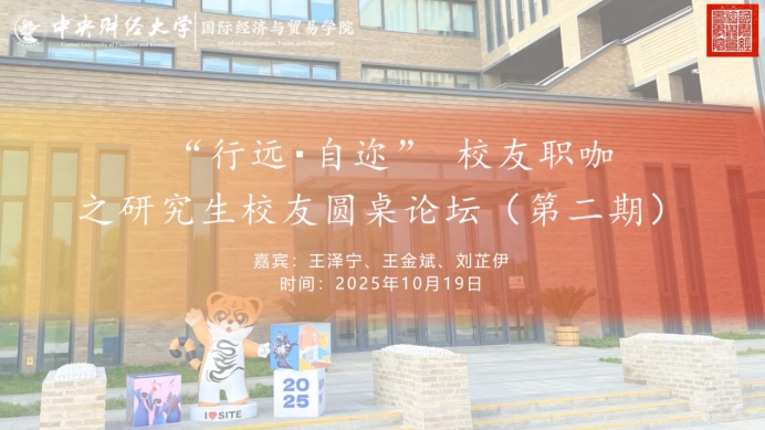 非常感谢学长学姐们的从业经验分享,也非常感谢学院提供的平台。通过这次圆桌论坛,我了解到国贸人在不同领域的就业可能性,有效缓解了我对于人工智能和经济波动对就业市场的复合影响所产生的就业焦虑。同时,学长学姐们介绍了企业不同岗位的工作内容和招聘要求,拓宽我的求职思路,激励我对未来职业路径进行更加清晰的规划。我将赓续中财国贸人的精神,始终保持学科自信,刻苦努力,全面发展,以成长的姿态走向社会。