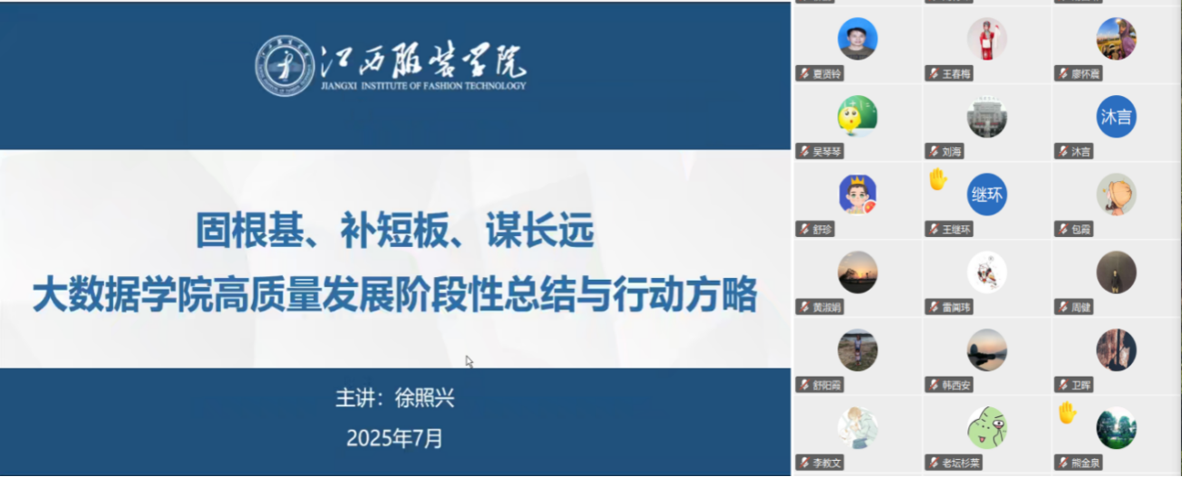 为实现学院“十五五”的发展目标,徐照兴院长提出了几点工作要求建议。第一深化党建品牌建设,切实发挥党建引领作用。第二优化专业结构,申报新专业及旧专业升级。第三深化教学改革,包括课程体系优化、教学方法手段创新、资源建设加强,探索智能教育新形态。第四强化学科竞赛,进一步加强学科竞赛的组织、培训与指导等。第五深化服装特色,从教学方面、科研方面、学科竞赛、社会服务方面给出了具体建议。
