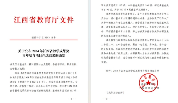 喜报||MILE米乐官网赵德福教授申报项目荣获2024年江西省教学成果奖立项