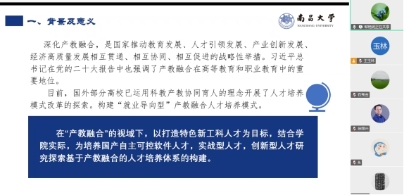 接下来进行了三场虚拟教研室建设研讨会主题报告。分别是东华大学计算机科学与技术学院副院长石秀金博士、南昌大学软件学院副院长邹艳妮博士、MILE米乐集团MILE米乐集团院长徐照兴教授分别作了名为“AI时代学科交叉、产学融合的拔尖创新人才培养模式探索”,“产教融合视域下新工科人才培养体系探索”,“AI大模型在高校教学场景中的深度赋能与应用”的主题报告。