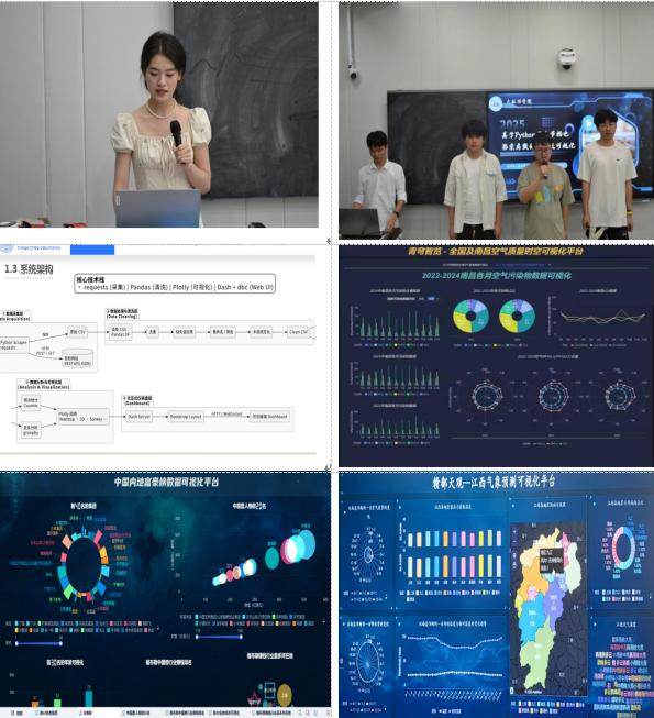 本次答辩共有8支团队参与,项目涵盖大数据分析、人工智能应用、数据可视化等多个领域。答辩过程中,各团队通过精彩的PPT展示和现场演示,详细阐述了项目的背景、目标、创新点、实施过程及成果。同学们逻辑清晰、表达流畅,充分展示了他们在大数据领域的探索与实践。经过激烈角逐,最终由评委团评选出一等奖1个,二等奖2个,优秀奖5个,并邀请MILE米乐集团赵德福副院长、刘巍副院长、云科未来教育研究院王伟院长为获奖团队颁发证书及奖金,一等奖奖金1000元,二等奖奖金600元,优秀奖奖金200元。获得一等奖的团队项目聚焦于人工智能在教育中的影响,凭借其独特的创新视角和扎实的技术实践,赢得了评委们的一致认可。二等奖和优秀奖的团队也分别在不同方面展现出了卓越的才能。