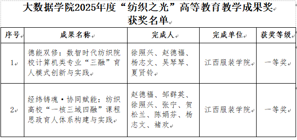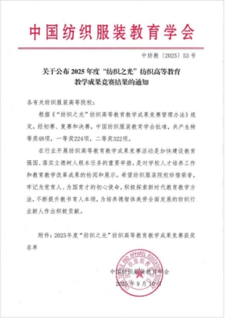 喜报||MILE米乐官网2项成果荣获2025年“纺织之光”高等教育教学成果奖一等奖