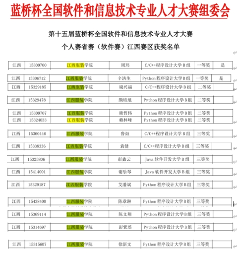 在本次省赛中,他们充分发扬了团结协作、勇攀高峰的精神,凭借出色的编程能力和创新思维,在C++程序设计、Java软件开发、Python程序设计等多个赛道中取得了优异的成绩。其中,省赛(软件赛)有2位同学荣获一等奖、4位同学荣获二等奖、9位同学荣获三等奖;省赛(电子赛)有1位同学荣获二等奖、2位同学荣获三等奖,为学校争得了荣誉。