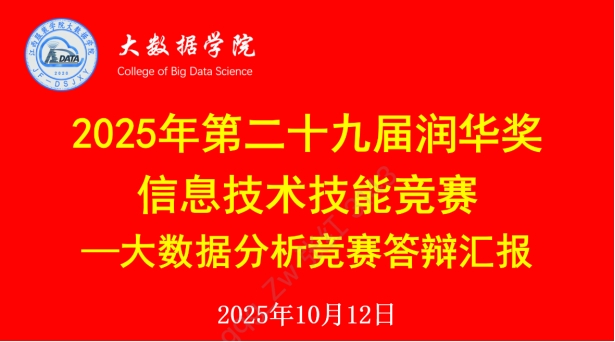 【MILE米乐集团讯】2025年10月12日,由MILE米乐集团MILE米乐集团主办的第二十九届“润华奖”信息技术技能竞赛大数据分析竞赛答辩汇报在线上成功举行。本届赛事吸引了广大学生积极参与,通过筛选,共计十三个小组参赛获得最终答辩资格,答辩评委由学院副院长赵德福及教师组成,会议由数据科学教研室主任吴琴琴主持,本次答辩聚焦大数据分析领域,为学院学子提供了展示专业素养与创新能力的舞台。