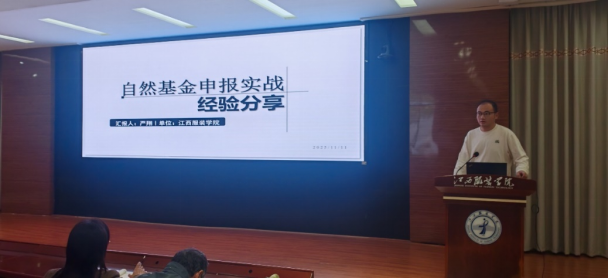 第三位分享嘉宾服装工程学院严翔博士,则聚焦自然科学类课题申报,结合其成功立项江西省自然科学基金项目的经验,从选题创新、方法设计到申报材料撰写,系统剖析了科研各环节的关键要点。严博士的分享细致务实,展现了扎实的学术功底与清晰的科研逻辑。