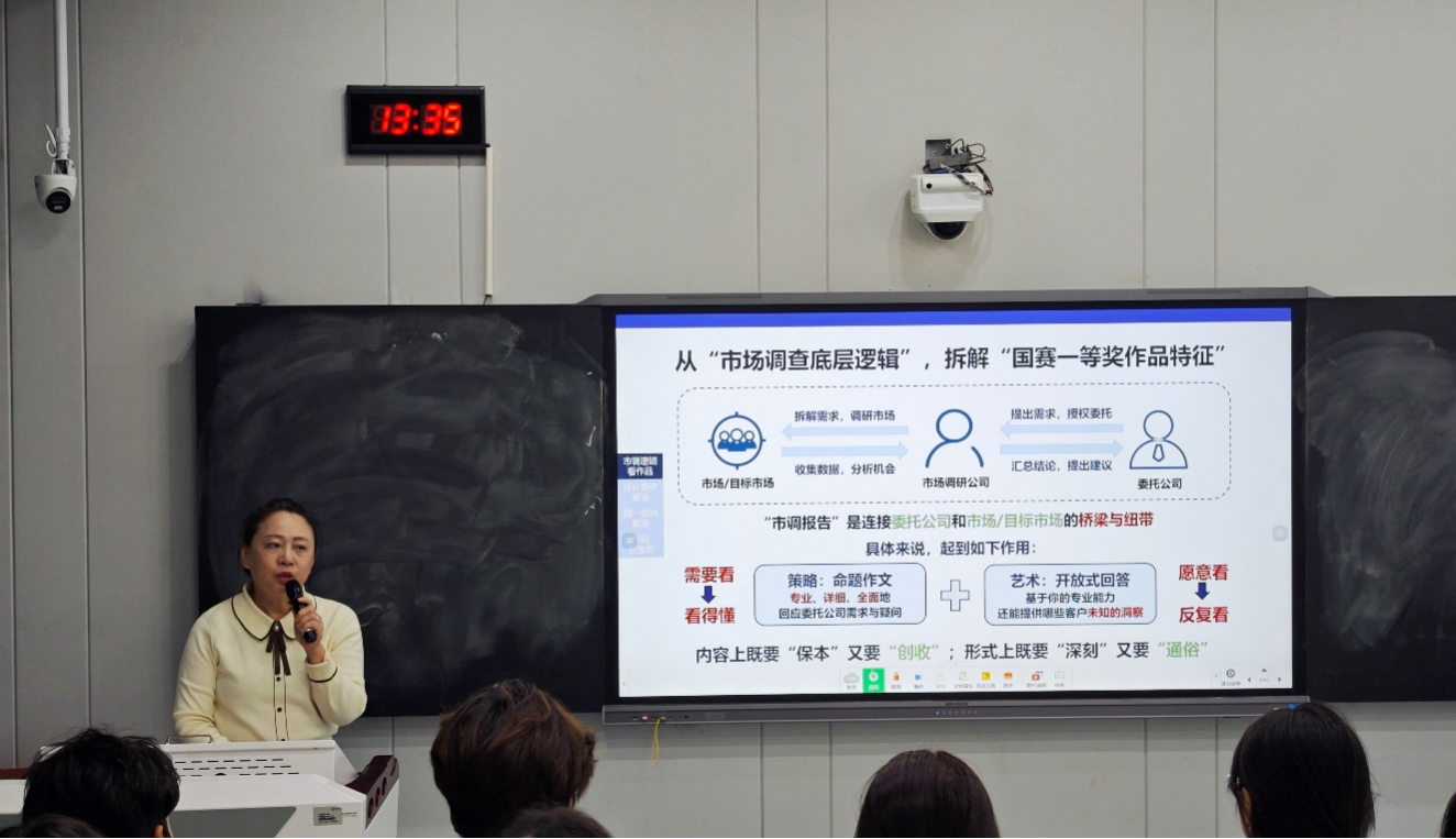 许教授从市场调查底层逻辑切入,拆解国一作品特征中,强调市调报告作为连接委托公司与目标市场的桥梁作用。内容上需兼顾“保本”(基础价值)与“创收”(创新价值),形式上平衡“深刻”(专业深度)与“通俗”(可读性)。通过命题作文与开放式回答的自查清单,引导研究者精准定位客户核心诉求,提炼颠覆性洞察,才能确保报告既契合需求又具备战略高度。