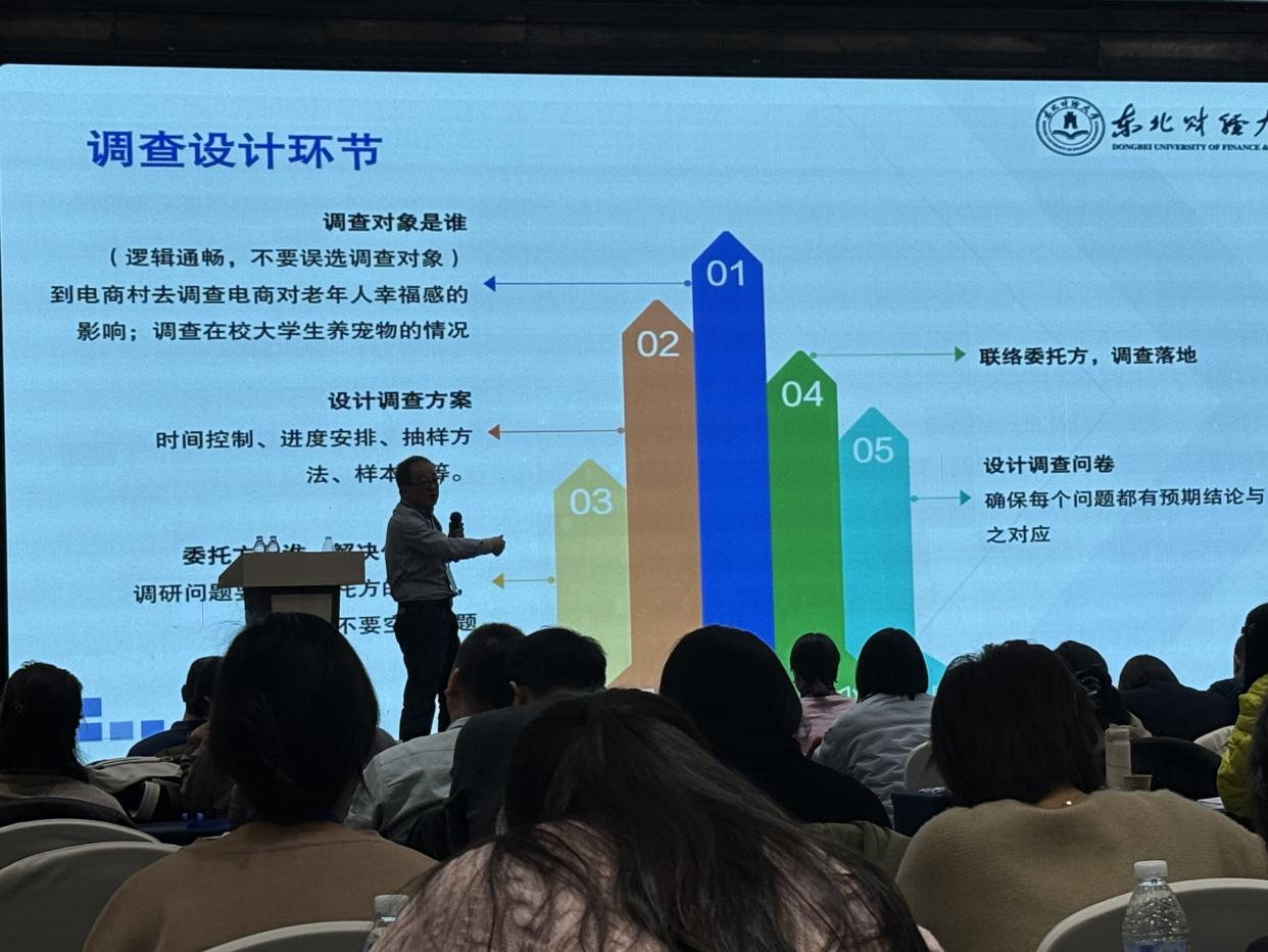 茶歇过后,东北财经大学屈超教授带来了“第十六届市调大赛关键节点梳理与进度管控”的主题分享。屈教授从大赛的时间节点、任务安排、进度管控等方面进行了全面剖析,结合具体案例,详细讲解了如何在不同阶段对学生进行有效的指导和监督。他强调,合理的进度安排和严格的管控是参赛项目成功的关键,指导老师要帮助学生制定详细的计划,并定期进行检查和反馈。