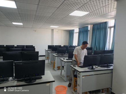 张学林副院长强调,一是检查机房环境外设情况,重点检查机房门开合情况是否良好,锁具使用是否正常,灯管是否正常光亮,机房内窗户是否达到防水防尘的密封要求;二是检查机房地面和天花板情况,机房墙体有无渗水、漏水和裂缝情况,确保机房清洁卫生,没有杂物;三是检查机房设备配套情况,保证机房电脑主机、鼠标、鼠标垫、键盘、椅子等一一配套;四是检查机房设备运行情况,保证机房主机、显示屏、配电柜等设备正常运行,如发生故障,提醒技术人员及时处置,确保终端机电脑可连接并控制学生电脑,保证教师授课和学生自主操作的正常运行。