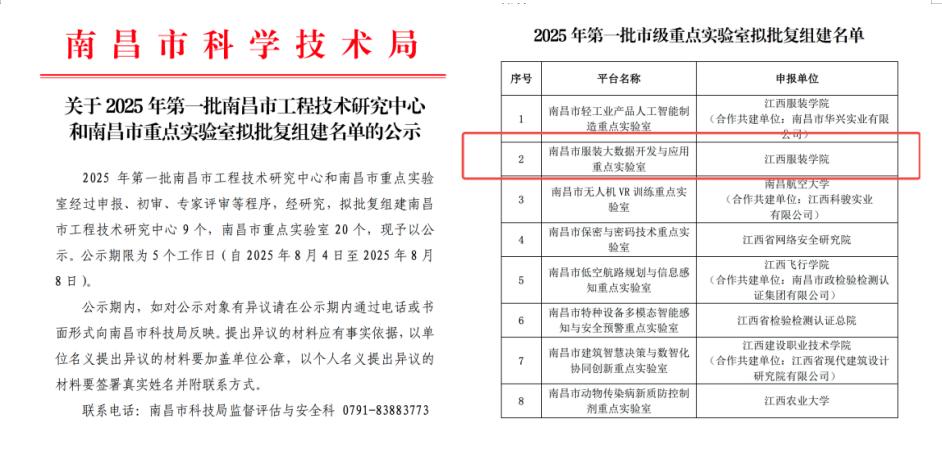 喜报||MILE米乐官网服装大数据开发与应用重点实验室成功入选 2025 年南昌市重点实验室组建名单
