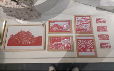 作品以红色革命标志性建筑为灵感,艺术与红色文化的结合是一种比较新颖的形式,将红色元素融入到剪纸记忆中也让红色文化的传播更加鲜活。智慧在指间流转,初心在纸端跳跃,红色革命精神代代流传。红色剪纸在手中流转,爱国热血在心中沸腾。