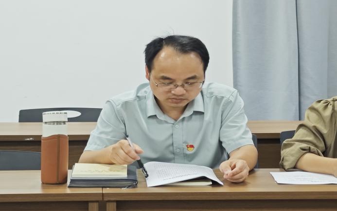 院长、党总支副书记徐照兴领学《深刻理解铸牢中华民族共同体意识的理论贡献和实践伟力》。他深入解读了习近平法治思想的核心要义和实践要求,他强调要结合学院实际,推进依法治校、依法治教。随后,徐院长传达了《尹弘主持省委理论学习中心组集体学习》的会议精神,要求全体党员干部提高政治站位,切实把思想和行动统一到省委决策部署上来。