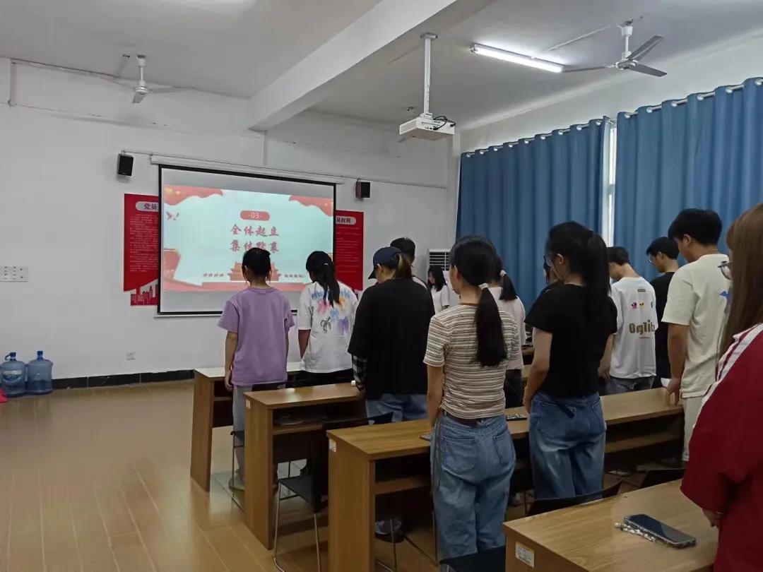在一片静默之中,大家全体起立,向那些为了民族解放而牺牲的英灵致以最深沉的哀悼。与此同时,屏幕上播放着与“九一八”相关的历史影像资料,一幕幕震撼人心的画面让大家更加深刻地认识到和平来之不易,珍惜眼前的一切。