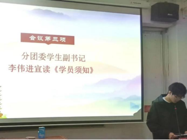 分团委学生副书记李伟进宣读《学员须知》。简要介绍了本次学生骨干培训班的主要课程。