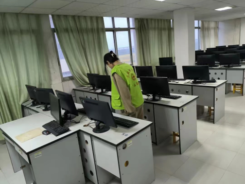 在实验室,毕业生们对机房桌面及地板进行了深度清洁。他们严格按照操作规程进行,确保清洁到位。经过一番努力,实验室焕然一新,为师生们提供一个干净整洁的上课环境。