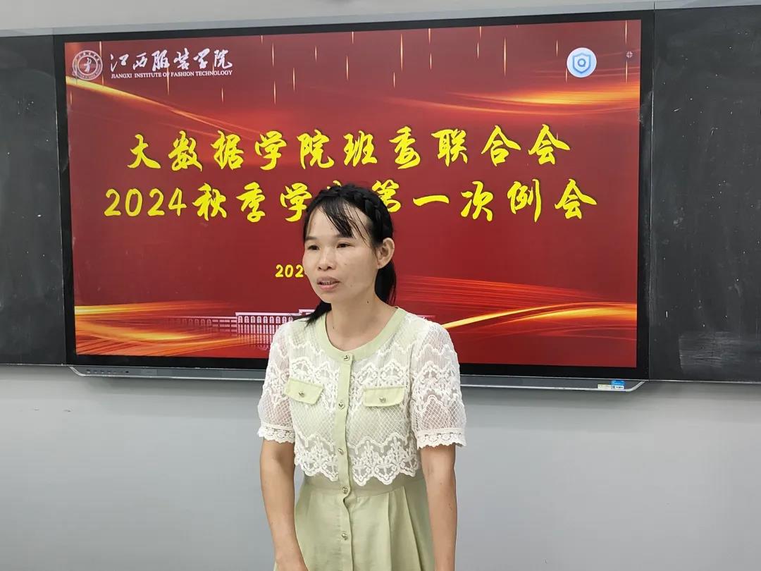 会议伊始,指导老师周文琴强调了本次例会的重要性。新学期、新气象、新征程,班委联合会作为学院学生自我管理的重要组织,在班级建设和学院发展中起着关键作用。本次会议围绕新学年接下来几个方面进行展开。
