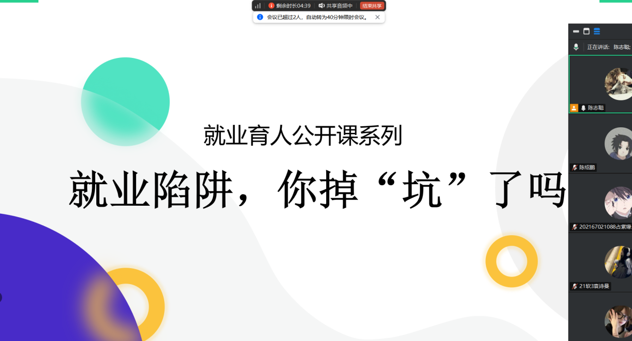 此次线上主题班会的举办,不仅增强了同学们的就业风险防范意识,也为大家提供了实用的防范技巧和知识储备。今后,学院将继续关注毕业生就业问题,举办更多有益的活动,为同学们的就业保驾护航。