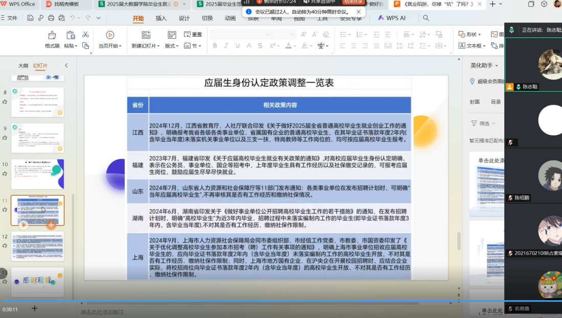 此外,班会还特别强调了应届生身份的界定问题。辅导员向同学们解释了当年应届毕业生和择业期应届毕业生的概念,并提醒大家要珍惜应届生身份,合理利用这一优势在求职过程中取得更多机会。
