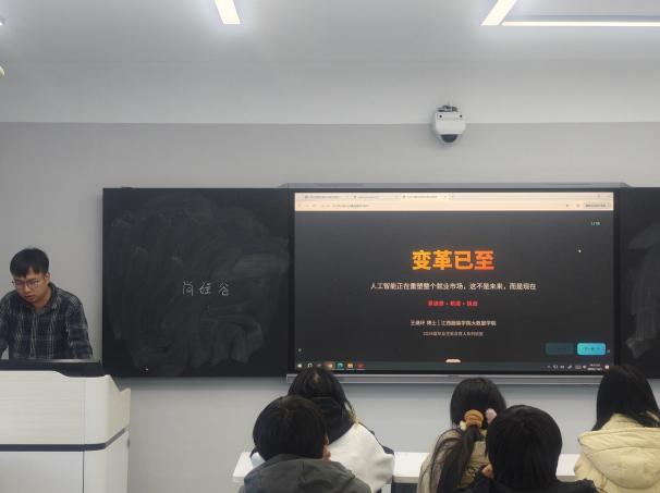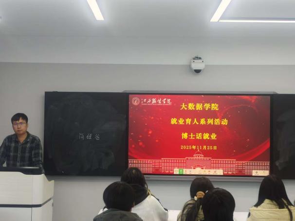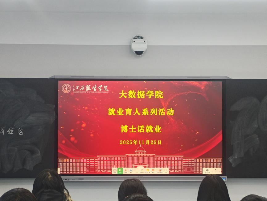 张川博则通过互动提问方式切入就业指导,用一组组鲜活数据印证当前时代AI在就业中的价值。他展示了人工智能在纺织服装智能设计、智能制造、供应链数字化管理等领域的渗透率报告,以及国内头部企业、互联网大厂的对口岗位招聘数据,指出大数据相关岗位年需求增长率较高,尤其是“AI+行业”的融合型岗位呈现供不应求的态势,而江西本地纺织服装产业的数字化转型,更为本专业学子提供了近水楼台的就业机会。在岗位选择建议上,张博士强调要把握“新侧重”:技术功底扎实的同学可聚焦区块链开发、大模型应用、数据安全等“新核心岗位”,深耕技术领域形成差异化优势;综合能力突出的同学可关注“AI+纺织”“AI+教育”“AI+政务”等“新融合岗”,在跨领域场景中寻找职业新定位,精准踩准行业发展风口。此外,张博士还针对非毕业生提出“早规划、早实践”建议,鼓励同学们通过学科竞赛、校企合作项目、科研助理实践等方式,积累项目经验与行业资源,为未来求职奠定坚实基础。