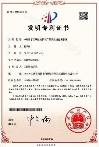 该成果利用去中心化网络结构,结合权威证明机制、哈希算法、时间戳技术、智能合约等区块链核心技术,构建服装产业协同制造的服装产品溯源系统。追溯系统有数据录入模块、数据处理模块以及产品溯源模块。在将不同的供应链节点所获得的服装产品信息上传至服务中心后,通过对供应链节点对应的产品溯源码和索引链接进行加密,获得与服装产品唯一对应的公钥,用户在购买服装产品后,则将用户所购买的服装产品对应的公钥发送至用户,用户通过所获得的公钥即可查询服装产品的相关信息,从而消除了用户与商家、商家与生产企业之间的信息差,降低用户购买到假冒伪劣产品的风险。