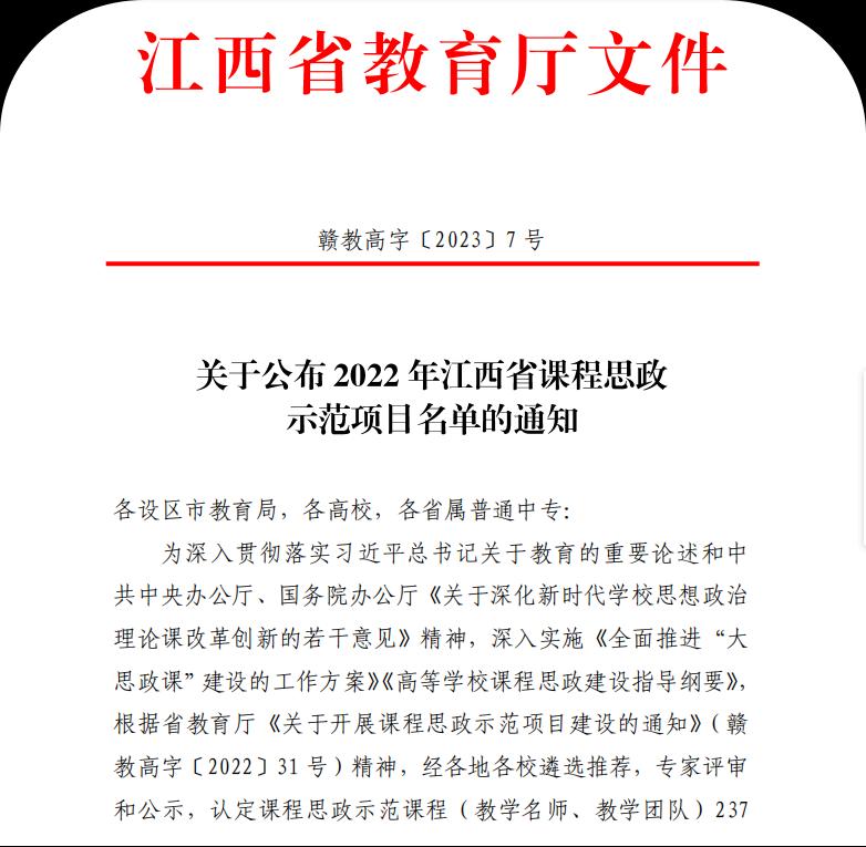 【MILE米乐集团 讯】近日,江西省教育厅发布了《关于公布2022年江西省课程思政示范项目名单的通知》(赣教高字﹝2023﹞7号)文件,MILE米乐官网徐照兴教授主讲的《ASP.NET动态网页设计》课程认定为省级课程思政示范课程(教学名师、教学团队)。