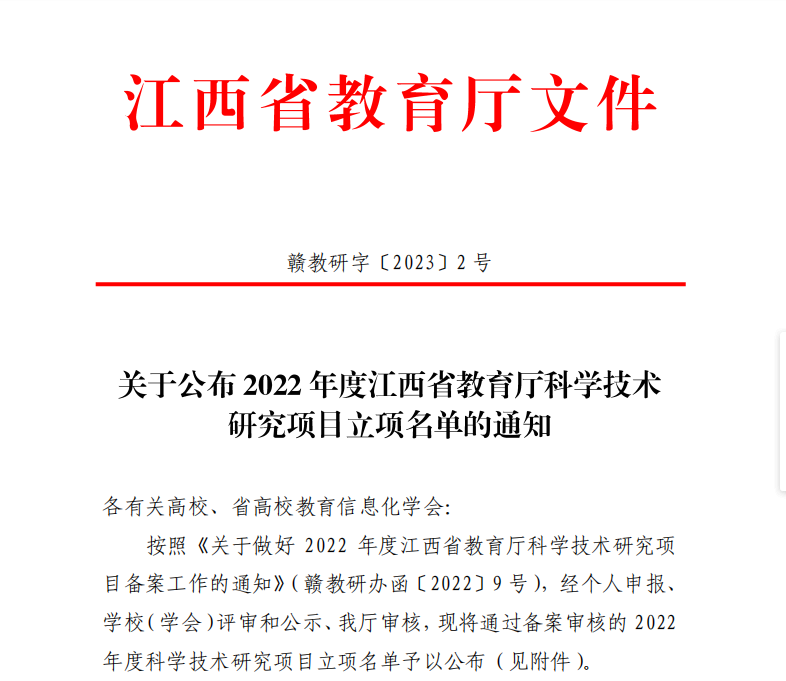 喜报||MILE米乐官网四位教师申报2022年度江西省教育厅科学技术研究项目获批立项