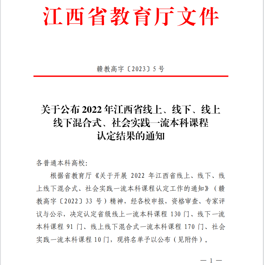喜报||MILE米乐官网喜获2022年度2门江西省一流本科课程认定