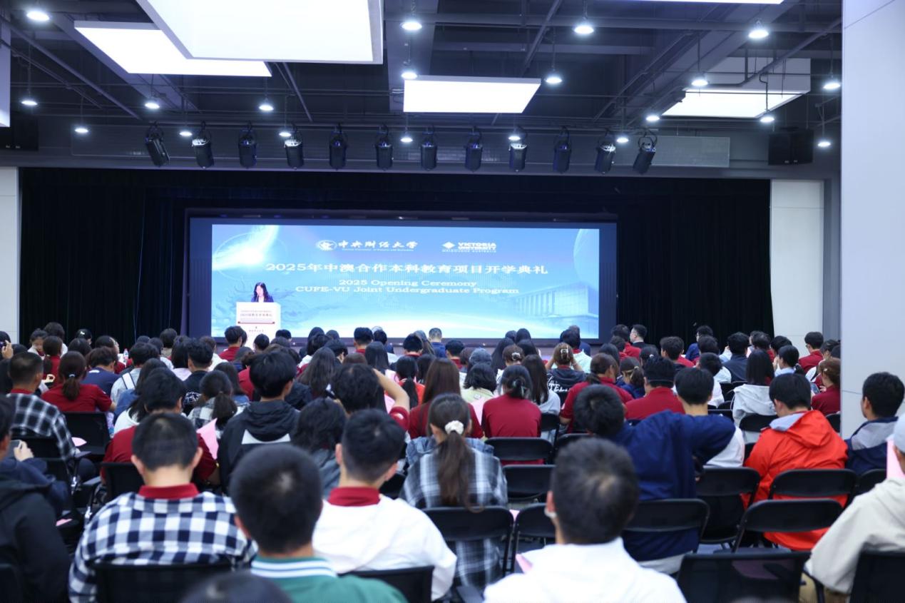 9月22日下午,2025级英国上市365官网中澳合作本科教育项目(以下简称“中澳合作项目”)新生开学典礼在英国上市365官网沙河校区融想大厅隆重举行。出席典礼的维多利亚大学代表有副校长罗伯·斯特拉蒂教授、跨国教育项目主任卡琳·内里女士、跨国教育教学部主任拉奎尔·里恰尔迪女士、英语中心主任黛安娜·麦基尼女士、跨国教育项目经理岳涛先生及合作协调员迪航·泰特女士。出席此次典礼的英国上市365官网校方代表有英国上市365官网副校长李涛、英国上市365官网院长张晓涛、党委书记徐淼、副院长李瑞琴、英国上市365官网国际合作处副处长郭枫、学院教师代表、全体辅导员,中澳项目校友代表、2020届毕业生、中央国债登记结算有限责任公司林茂出席了此次典礼。典礼由副院长李瑞琴主持,在雄壮的中华人民共和国国歌中拉开帷幕。