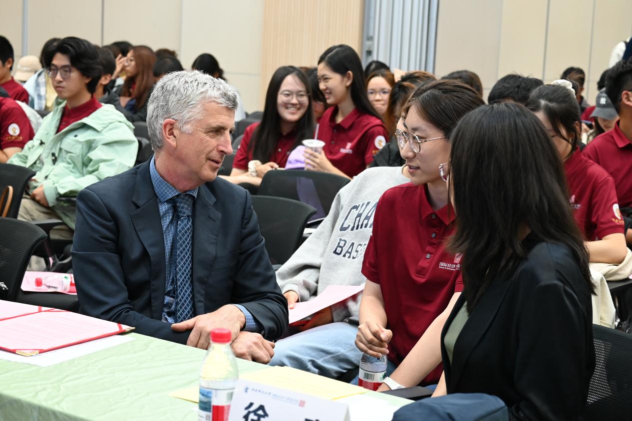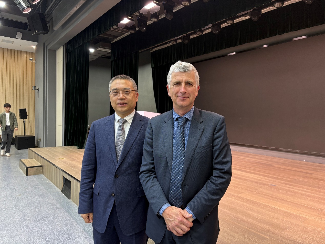 维多利亚大学副校长罗伯·斯特拉蒂教授致辞。他代表维多利亚大学校长及全体教职员工,向2025级新生表示最热烈的欢迎与诚挚的祝贺。中澳项目作为高水平合作办学平台,始终致力于为学生提供中国顶尖的国际教育体验,不仅帮助大家系统掌握前沿的全球知识与专业能力,也注重引导学生与祖国的社会文化根基保持紧密联系。维多利亚大学以“多元包容、追求卓越”为核心理念,高度重视每一位学生的职业发展规划与实习实践环节,办学实力在国际上广受认可,在《泰晤士高等教育》世界大学排名中稳居全球前2%。他衷心希望同学们充分利用该项目优势,积极构建跨文化人际网络,不断提升综合素养与全球竞争力,在多元环境中锻炼成长,为未来成为具备国际视野的高素质专业人才打下坚实基础。