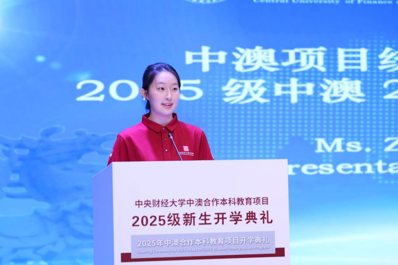 中澳项目统招生新生代表2025级中澳2班赵芳其同学发言